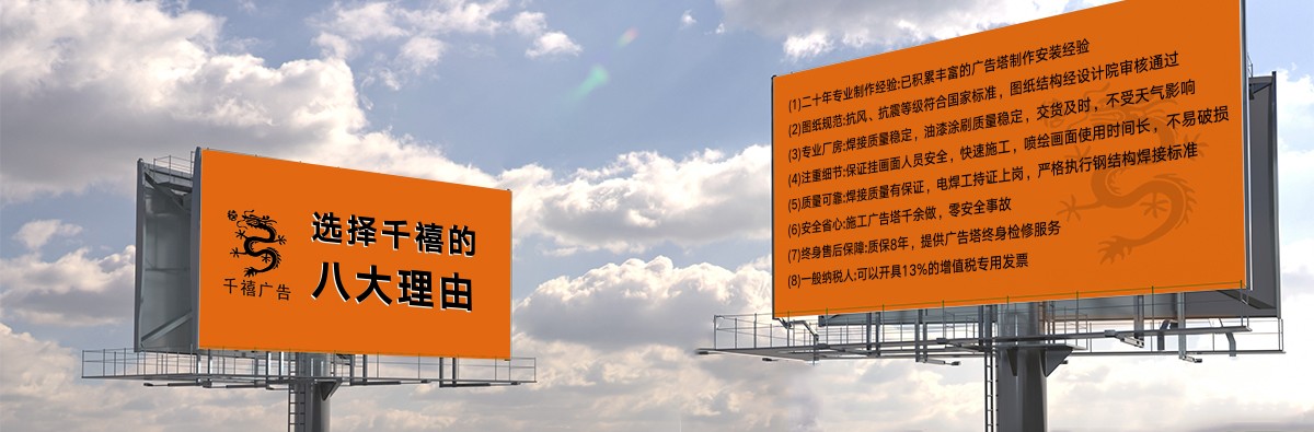 世紀(jì)之交,石家莊千禧廣告裝飾有限公司(下方簡(jiǎn)稱千禧廣告公司或公司)自2000年10月10日創(chuàng)立伊始,即在燕趙大地落地生根,成長(zhǎng)為國(guó)內(nèi)擁有23年施工經(jīng)驗(yàn)的實(shí)體型戶外廣告設(shè)施制作工廠。公司集新品研發(fā)、結(jié)構(gòu)設(shè)計(jì)、生產(chǎn)制作、施工建造于一體,現(xiàn)代化生產(chǎn)廠房為大中型高炮廣告牌(又稱高炮廣告塔、單立柱廣告牌、單立柱廣告塔、擎天柱廣告塔、擎天柱廣告牌)、龍門架、三面翻鋼結(jié)構(gòu)、LED廣告屏鋼結(jié)構(gòu)等的精益生產(chǎn)、高效流水化作業(yè),產(chǎn)品交工質(zhì)量過硬,公司擁有現(xiàn)代化生產(chǎn)車間,配備了不可或缺的硬件裝備。